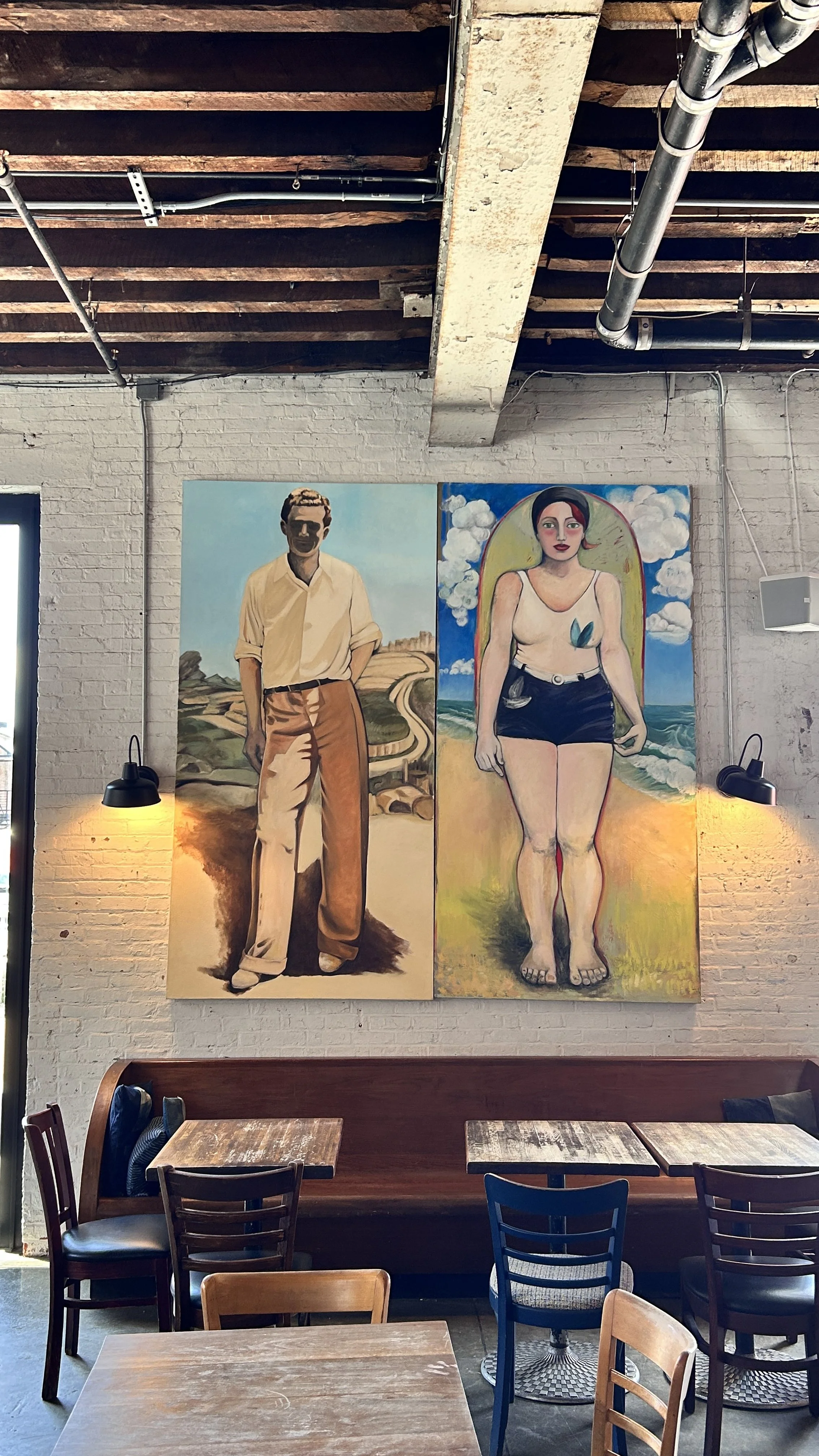 In this exhibit, each painting looks as if it is in the spot it was supposed to be to be in. My father in a Mantegna landscape, iconic images of movies I saw with them, Ellis Island across the Bay, The Statue Of Liberty and my paintings in the last waterfront in New York located in Red Hook with its outlaw history, all contribute to a spiritual quality.